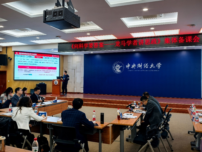 中国财政发展协同创新中心教授姚东旻详细对比了“十四五”到“十五五”规划建议的表述变化,对财税改革的重点任务与推进思路进行了深入解读。与会教师代表魏旭、梁上坤、刘权、邢雷分别就如何在课程教学中融入党的二十届四中全会精神,进一步提升《向科学要答案——龙马学者讲思政》课程教学效果进行充分交流。教师们表示,要学深悟透全会精神,以专业视角解读全会内容,针对学生多层次多学科的特点,以拓宽学生视野为目标,科学合理选题,充分开展案例教学,全面提升课堂教学吸引力、启发性和铸魂育人效果。