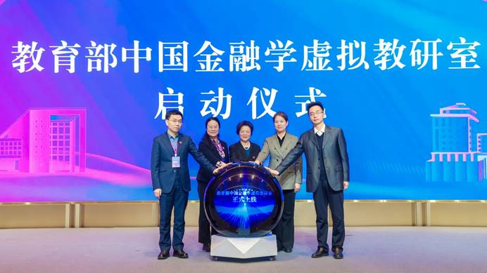 随后,大会举行教育部中国金融学虚拟教研室启动仪式。教研室带头人、金融学院教授李健作现场介绍,并与高等教育出版社副社长张丽娜,西藏大学党委常委、副校长宋吉红,北京外国语大学党委副书记苏大鹏,校党委常委、副校长李建军共同为虚拟教研室揭牌。