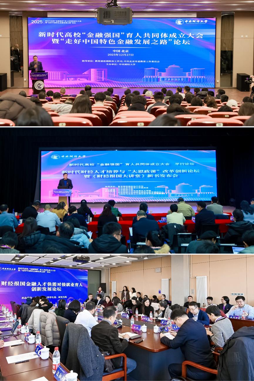 为深入学习贯彻党的二十大和二十届历次全会精神,全面贯彻落实习近平总书记关于教育和金融工作的重要论述,贯彻落实全国教育大会精神和《教育强国建设规划纲要(2024-2035年)》部署,高质量推进新时代立德树人工程实施,中央财经大学联合140余所高校,60余家骨干企业、行业组织、行业媒体联合成立新时代高校“金融强国”育人共同体。12月27日,新时代高校“金融强国”育人共同体成立大会暨“走好中国特色金融发展之路”论坛在京召开。